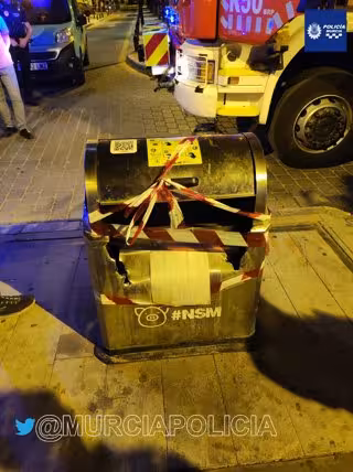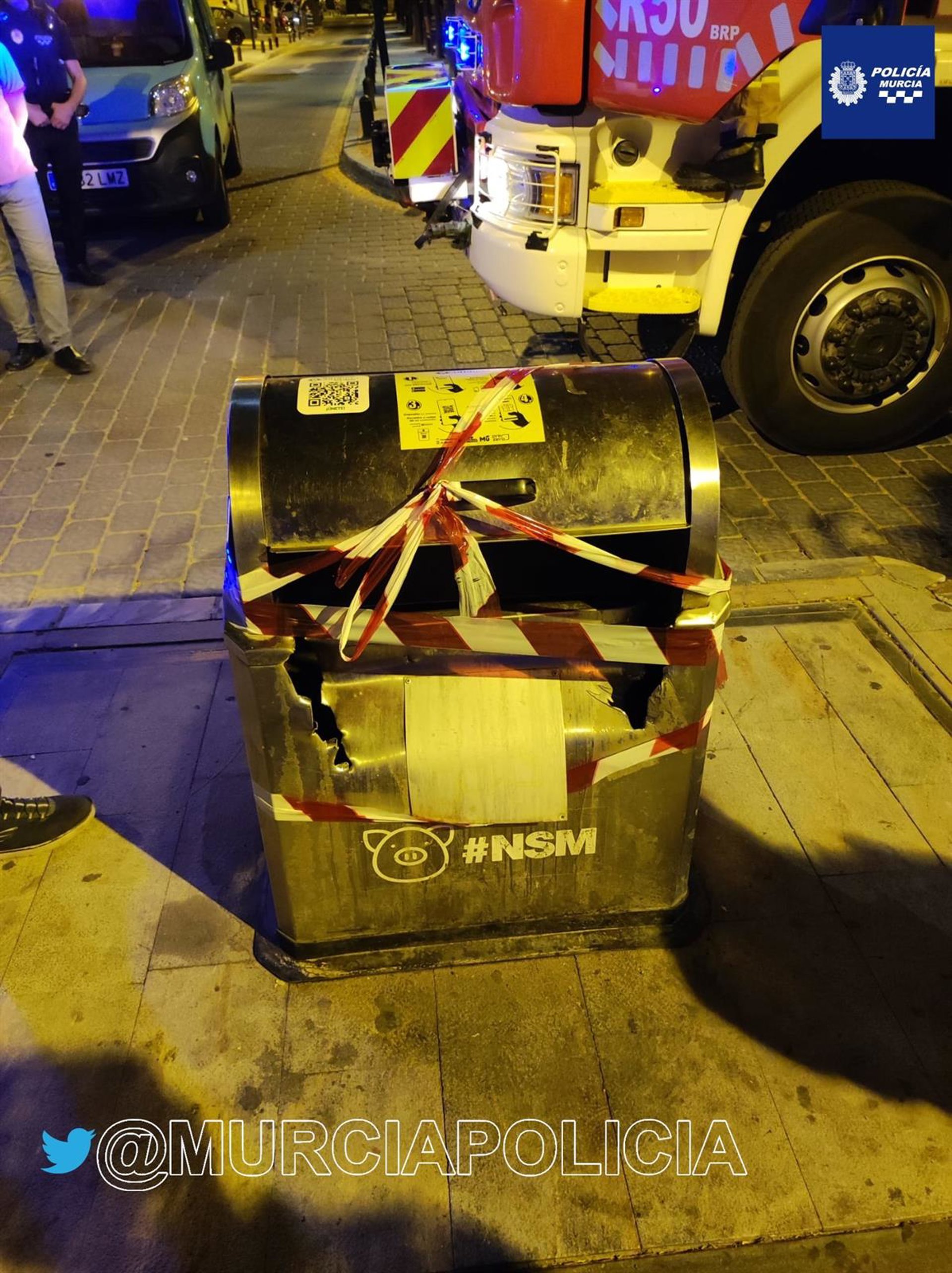 Imagen del estado en el que quedó el contenedor tras el suceso - POLICÍA LOCAL DE MURCIA