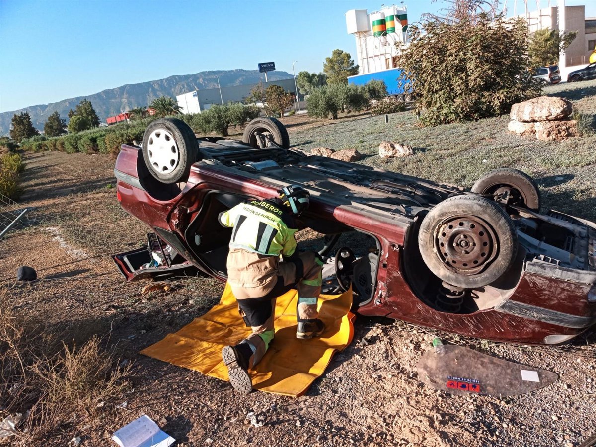 Un hombre ha resultado herido este jueves al volcar el vehículo que conducía en una de las salidas del polígono industrial de Alhama de Murcia (Murcia), según han informado fuentes del Centro de Coordinación de Emergencias.