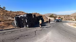 Un varón de 37 años ha resultado herido leve al volcar el camión que conducía tras salirse de la carretera RM-422, en el término municipal de Abanilla (Murcia), según informaron fuentes del Centro de Coordinación de Emergencias.