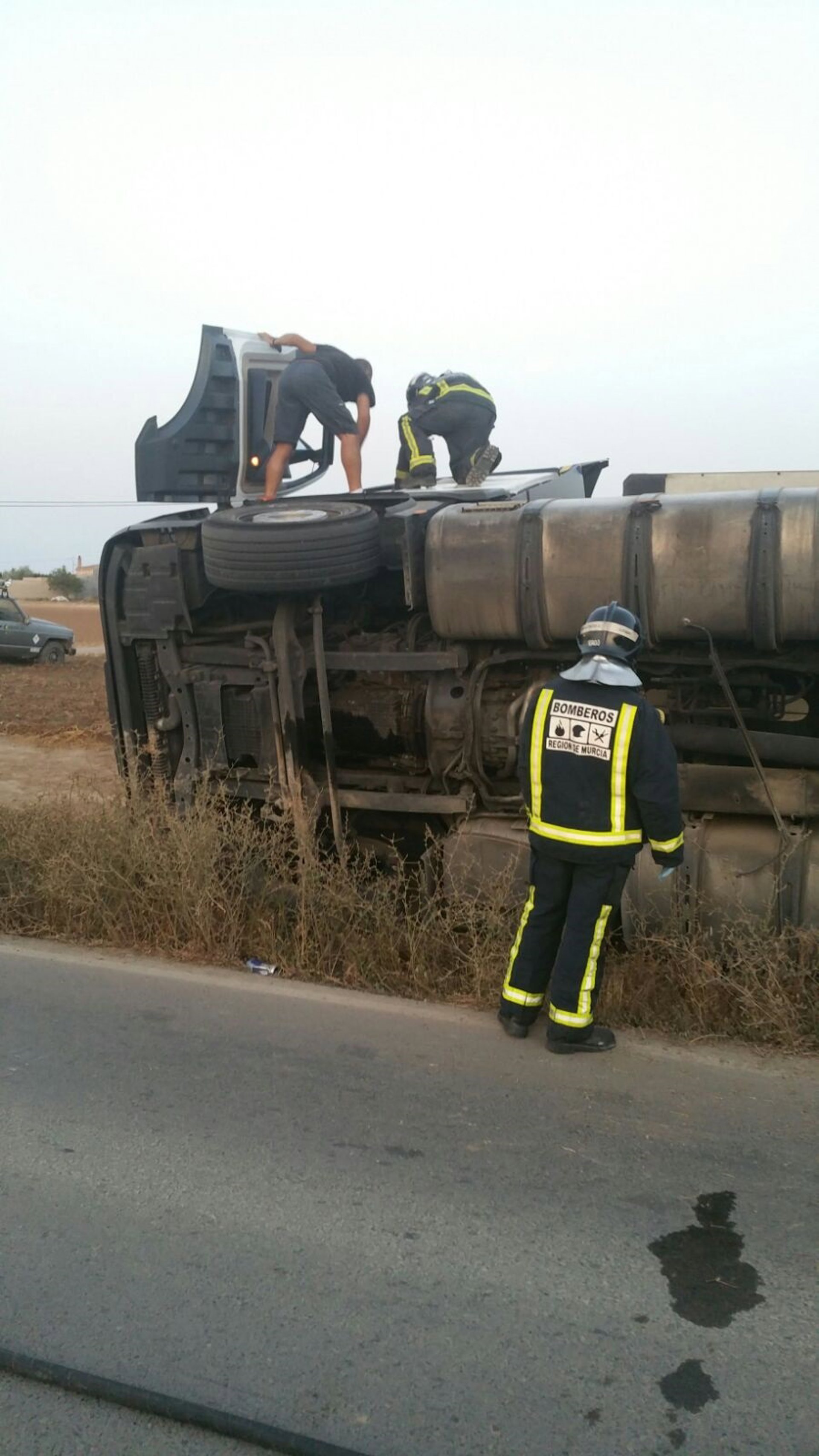 Un hombre resultó este lunes herido tras volcar el camión frigorífico que conducía y quedar atrapado en Torre Pacheco, según han informado fuentes del Centro de Coordinación de Emergencias.
