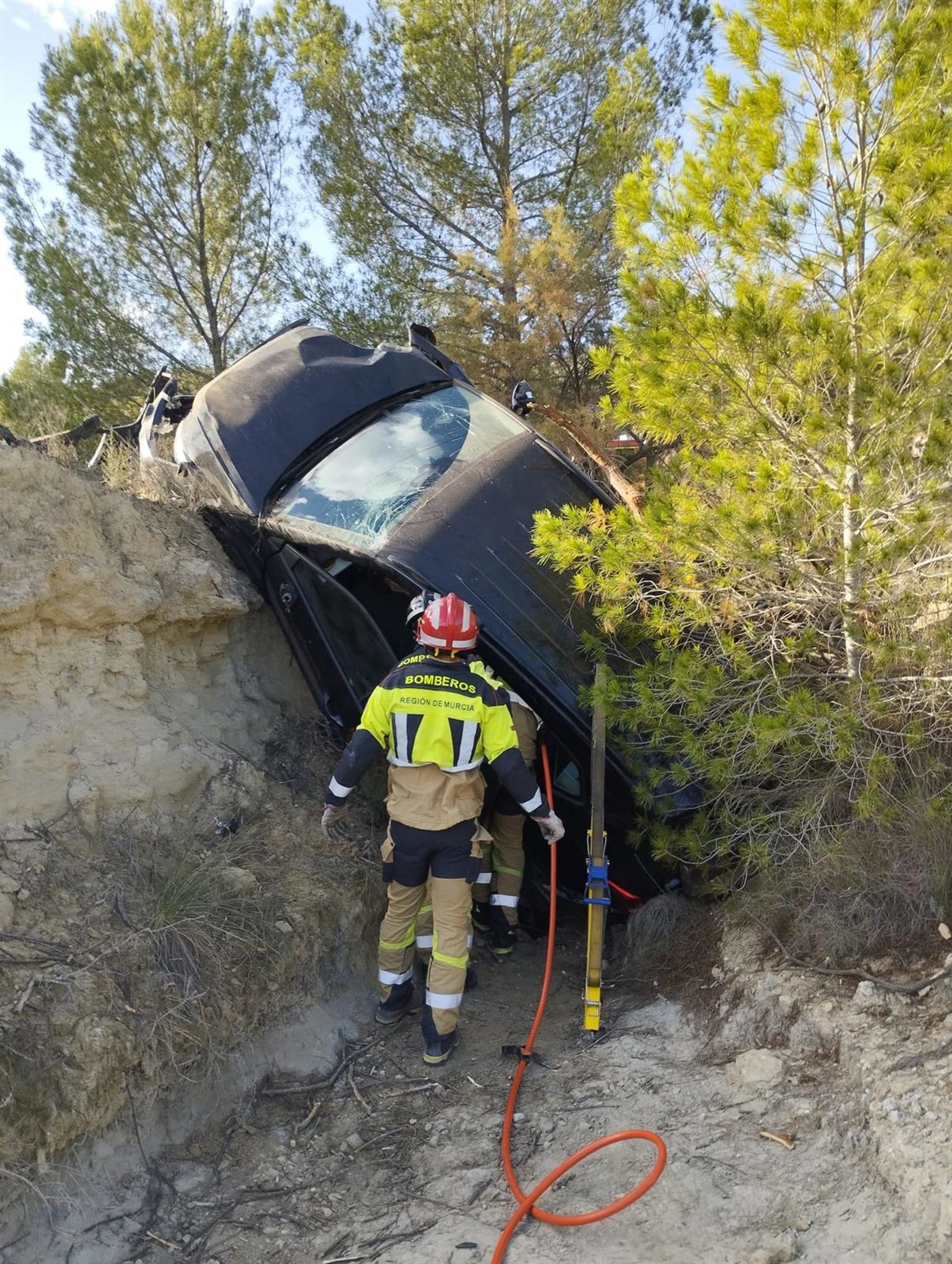 El suceso ha tenido lugar a las 9.07 horas, cuando una llamada al Centro de Coordinación y Emergencias 112 Región de Murcia alertaba de un accidente de tráfico ocurrido en la RM-711 donde vehículo se había salido de la vía en una curva. En el coche viajaban varias personas, quedando uno de los ocupantes atrapado.