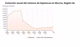 Gráfico que muestra la evolución anual del número de hipotecas en la Región - EUROPA PRESS