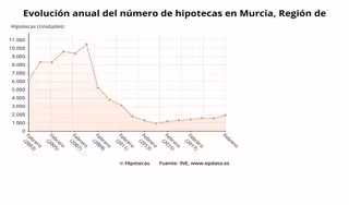 Durante febrero, se constituyeron en Murcia 1.313 hipotecas sobre fincas rústicas y urbanas (dentro de estas últimas se incluyen las viviendas).