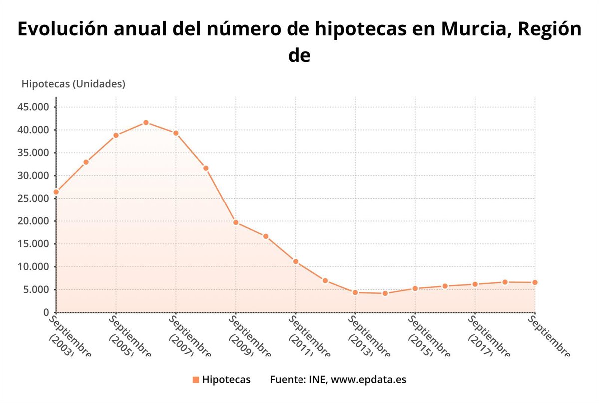 Evolución anual del número de hipotecas en Murcia en seotiembre 2019 - EUROPA PRESS