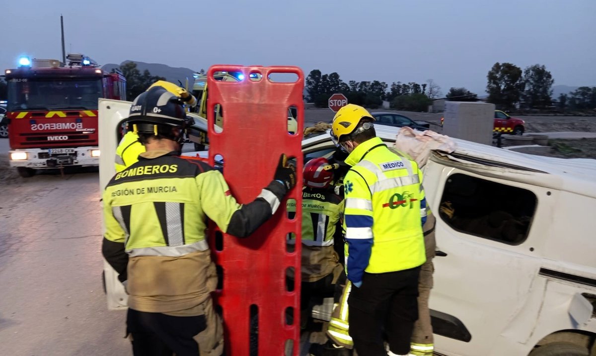 El siniestro se ha registrado sobre las 6.38 horas, en un camino rural que va de Lorca a El Esparragal, a la altura de La Torrecilla cuando, por causas que se desconocen, se ha producido una colisión y posterior vuelco entre dos turismos.