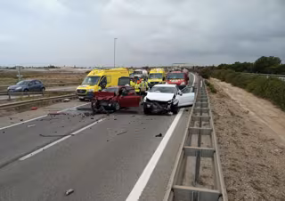 Un hombre de 50 años ha resultado herido graves y una mujer de 36 años con heridas leves al producirse una colisión entre dos turismos en la autopista AP-7, en la localidad de San Pedro del Pinatar, según informa el Centro de Coordinación de Emergencias.