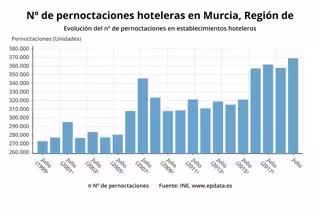 Archivo - Gráfica pernoctaciones mes de julio en Murcia - EPDATA - Archivo