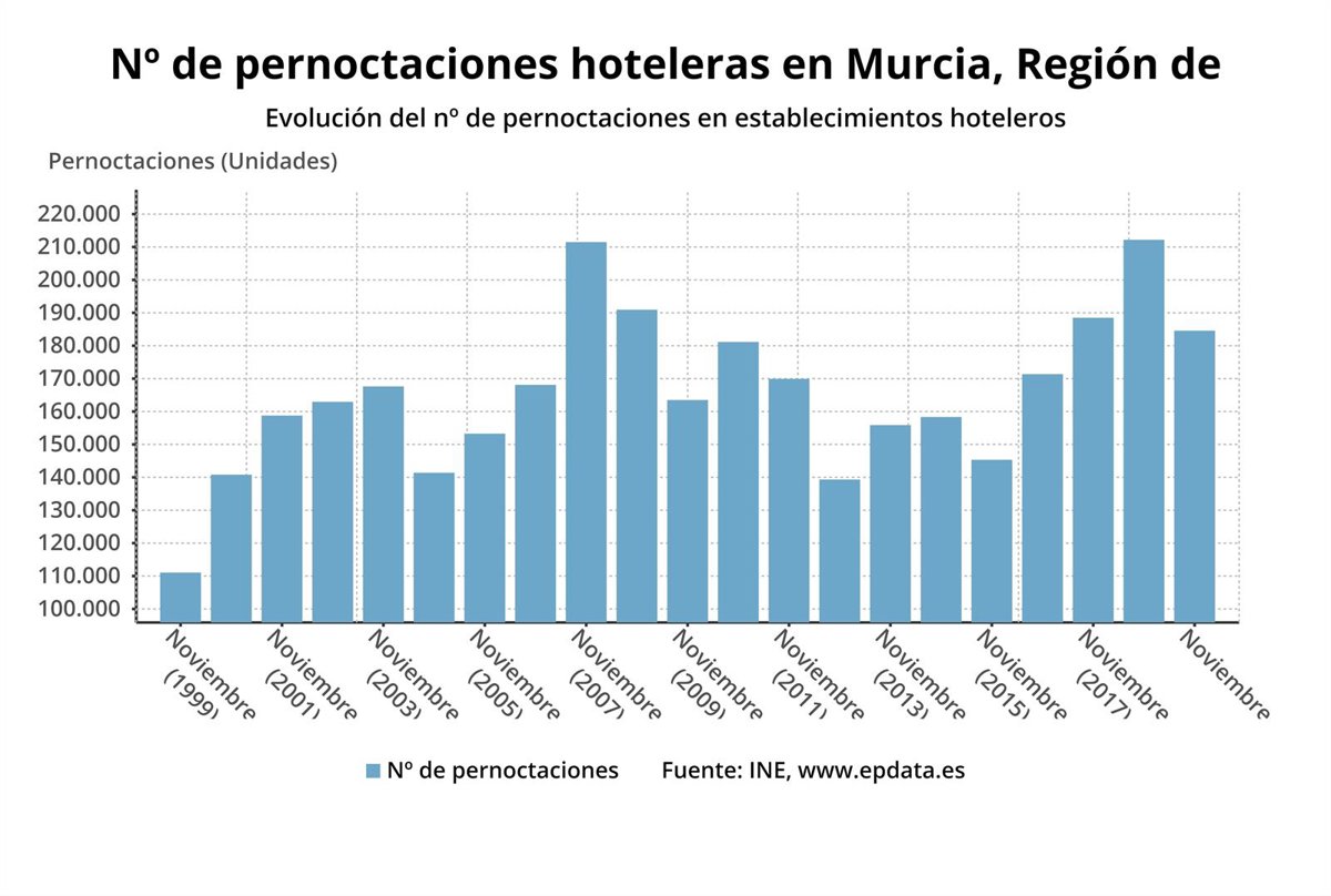 Evolución del número de pernoctaciones en la Región de Murcia - EP DATA