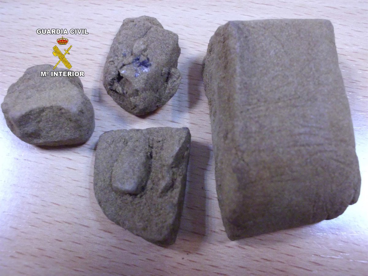 El detenido portaba en el interior del bolso 60 gramos de hachís en porciones dispuestas para la venta, así como casi 1.200 euros en efectivo, en monedas y billetes, dinero obtenido de la venta de drogas.