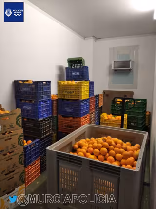 La Policía Local de Murcia ha identificado a cuatro individuos esta madrugada por el hurto de 1.780 kilogramos de naranjas en la pedanía de El Puntal.