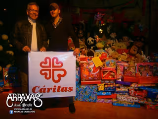Al acto de entrega y recogida de juguetes acudieron Antonio Martínez Sánchez, secretario general de Cáritas Región de Murcia y Juan Antonio Rico, organizador de la gala de salsa 'Un juguete, una sonrisa', según informaron fuentes de Cáritas en un comunicado.