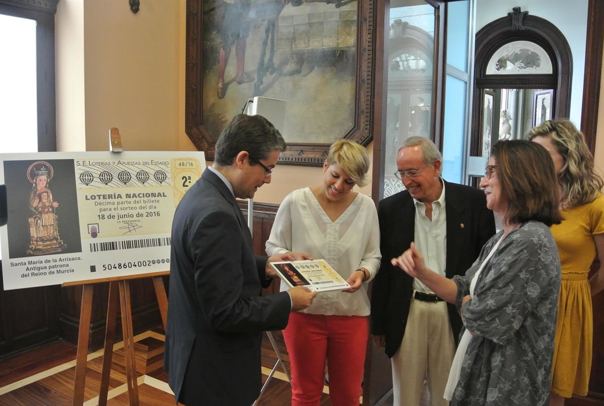 La consejera de Cultura y portavoz del Gobierno regional, Noelia Arroyo, ha presentado el décimo junto a la presidenta de Loterías y Apuestas del Estado, Inmaculada García, el concejal de Empleo, Turismo y Cultura de Murcia, Jesús Pacheco, y el Hermano Mayor de la Real y Antigua Hermandad de Devotos de Santa María de la Arrixaca, José Antonio Melgares, en un acto en el que ha destacado "la nueva difusión de nuestro patrimonio, identidad y cultura, que se realiza a través de Loterías del Estado".