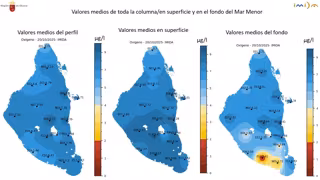 El equipo científico del Instituto Murciano de Investigación y Desarrollo Agrario y Medioambiental, que coordina la red una red de monitorización y control del Mar Menor, con 21 puntos de medición, ha venido desarrollando un control permanente de la evolución de los parámetros del ecosistema tras la dana.