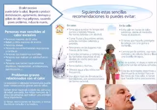 prevenir los efectos de estas temperaturas sobre la salud y seguir las indicaciones previstas para estos casos, como evitar la exposición directa al sol; refrescarse; beber líquidos y comer fruta y verduras con frecuencia; pedir información y consejo en su centro de salud o farmacia.