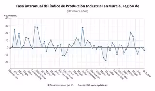 Evolución del Índice de producción industrial en la Región de Murcia - EP DATA