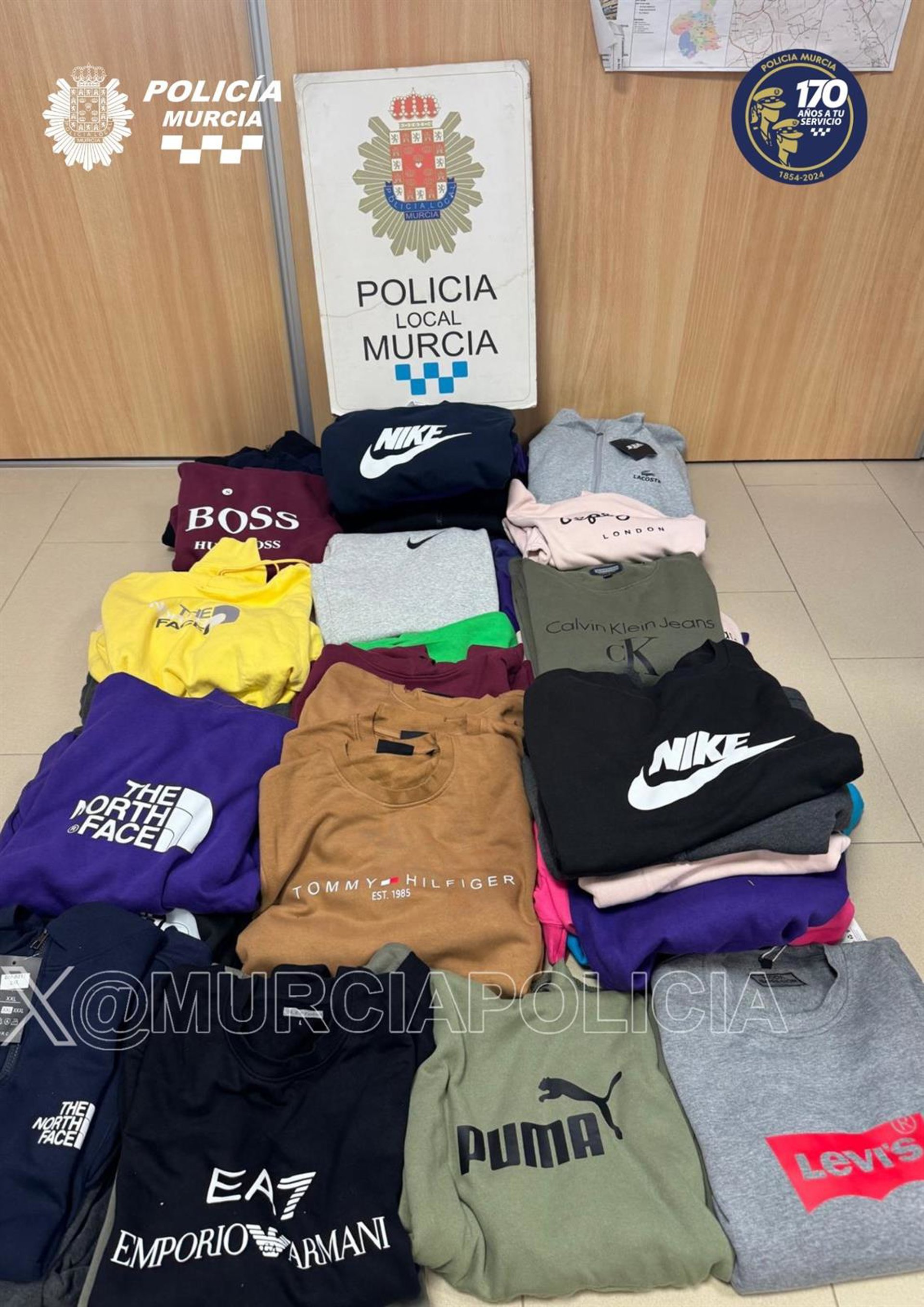 La Unidad de Pedanías de la comisaría de Alquerías vio a un varón, ya conocido por hechos similares, mientras intentaba vender las prendas, aparentemente de reconocidas marcas, entre los visitantes del mercado.