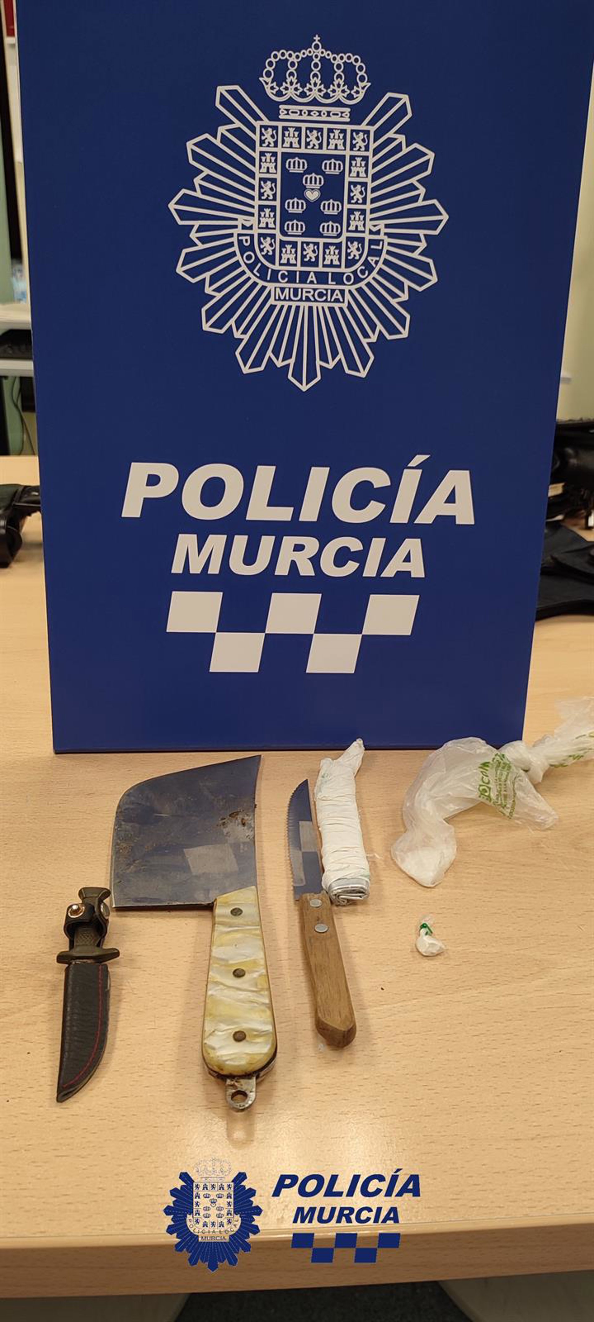 Varias dotaciones de agentes de la Policía Local de Murcia han intervenido esta pasada madrugada varios cuchillos y un hacha de cocina a un grupo de personas que habían protagonizado una riña entre ellos.