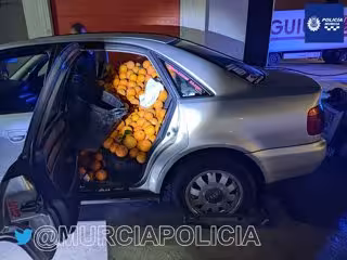 La Policía Local de Murcia intervino, en la madrugada del pasado domingo, un vehículo que transportaba 500 kilos de naranjas y mandarinas en el barrio de Espinardo de la ciudad de Murcia, según han informado fuentes policiales a través de sus redes sociales.