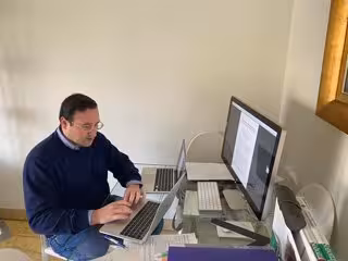 En la imagen, Juan Luis García Guirao, teletrabajando hoy, desde casa - UPCT