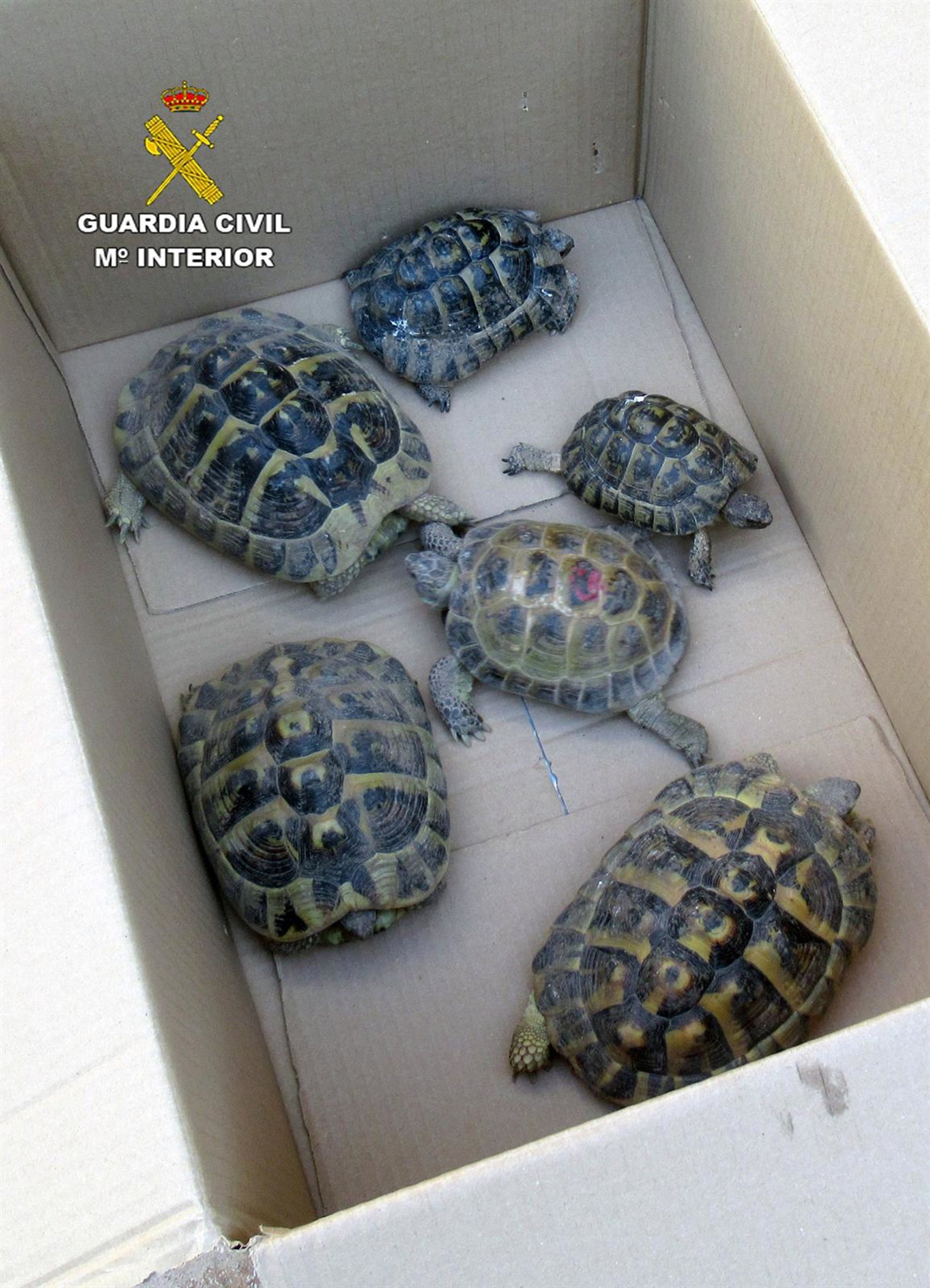 Las pesquisas practicadas permitieron localizar la vivienda donde fueron intervenidas tres hembras de tortuga mediterránea ('Testudo Hermanni'), un macho y una hembra de tortuga mora ('Testudo Graeca') y un ejemplar hembra de tortuga rusa ('Testudo Horsfieldii'). El propietario no pudo acreditar la procedencia de las mismas, por lo que le fueron instruidas diligencias por la presunta autoría de delito contra la flora y la fauna.