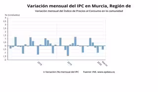 El Índice de Precios de Consumo (IPC) de la Región de Murcia ha descendido un 0,5 por ciento el pasado mes de marzo respecto al mes anterior, mientras que su tasa interanual se ha mantenido estable (0 por ciento), según datos difundidos este miércoles por el Instituto Nacional de Estadística (INE), recogidos por Europa Press.