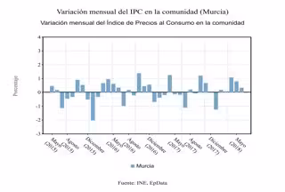 El IPC creció en todas las autonomías, y la Región de Murcia registra así el cuarto mayor aumento por comunidades junto a Asturias, Canarias, Castilla-La Mancha, Cataluña, Comunidad Valenciana, Extremadura, Galicia, Navarra y La Rioja, solo superior al registrado en Canarias (0,7 por ciento). En lo que va de año, han crecido un 1,2 por ciento en la Comunidad de Murcia.