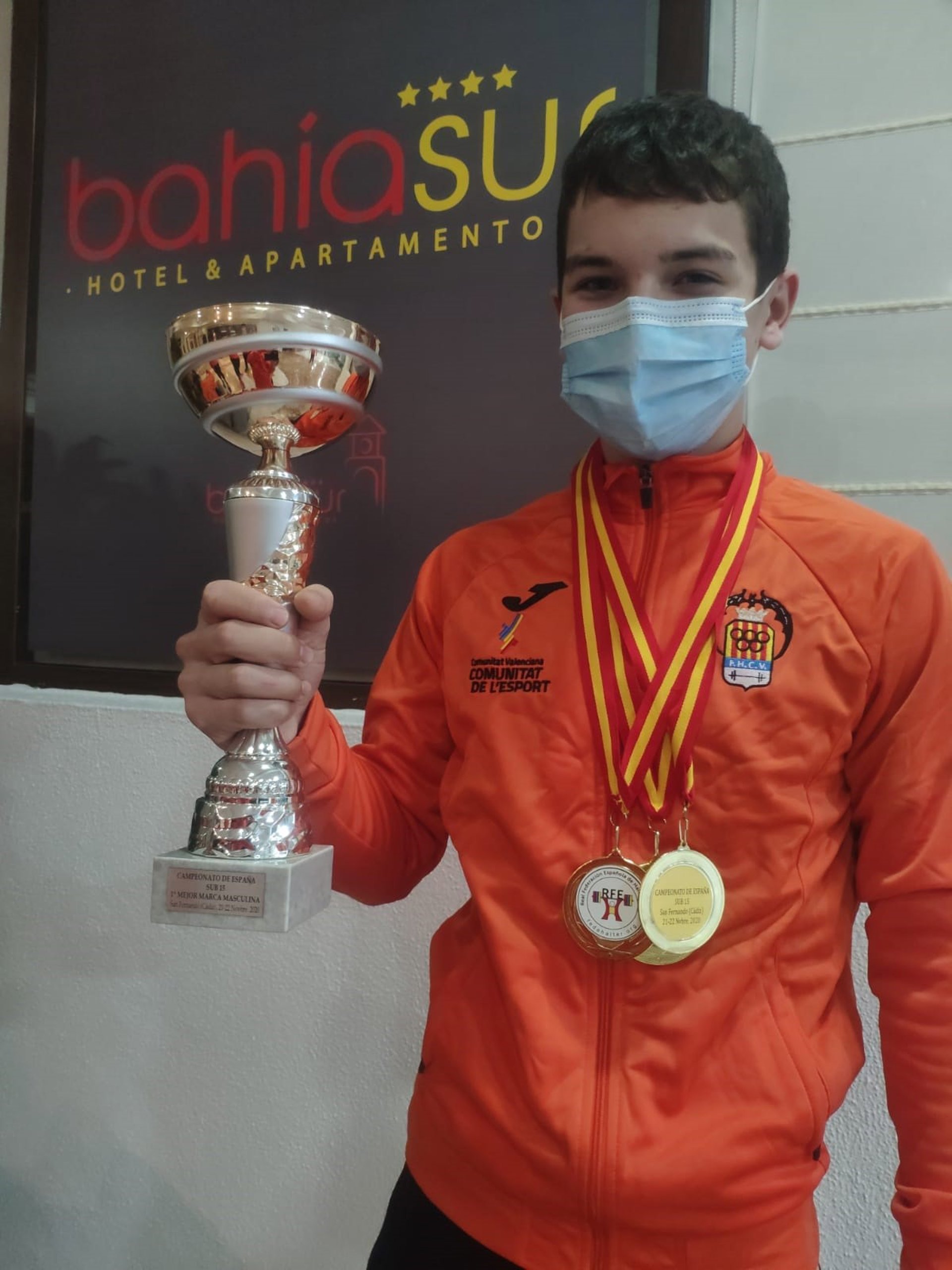 David Antonio García López muestra el trofeo ganado en el campeonato de España Sub 15 celebrado en San Fernando (Cádiz) - ORGANIZACIÓN