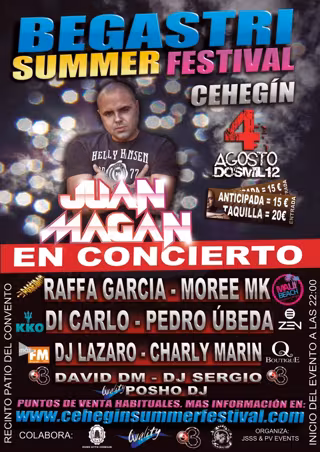 El artista Juan Magán traerá su famoso 'electro latino' a Cehegín el sábado, 4 de agosto, en un concierto que ha sido bautizado como 'Begastri Summer Festival'.