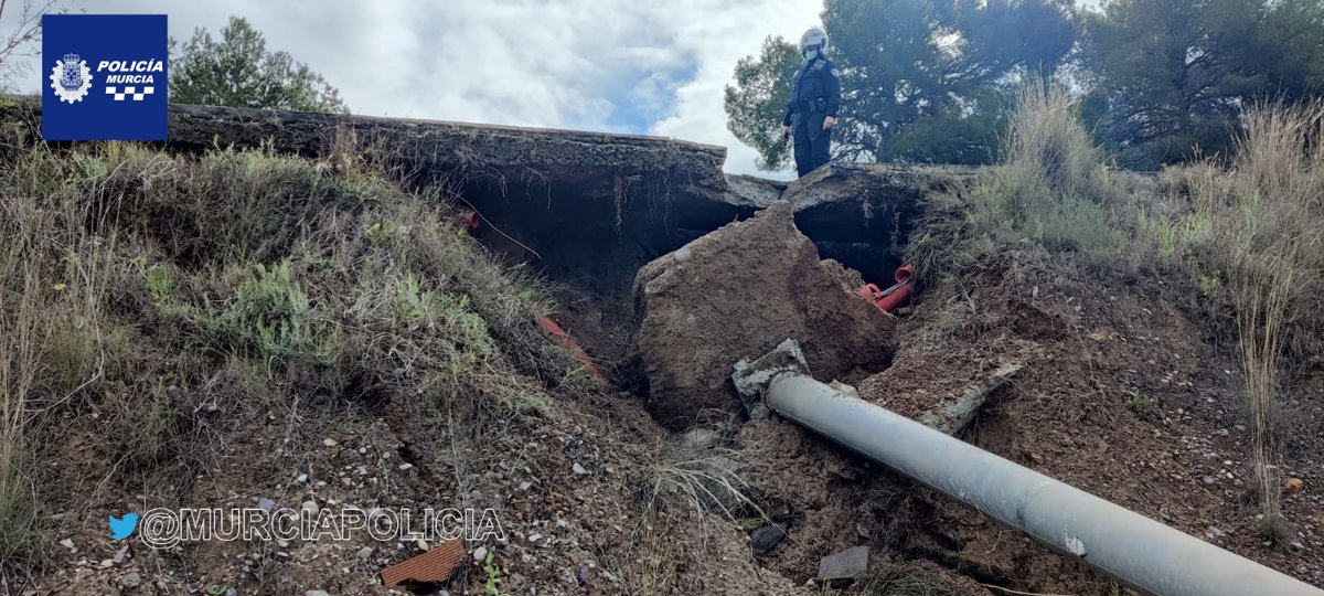 Parte de la calzada hundida - POLICÍA LOCAL DE MURCIA