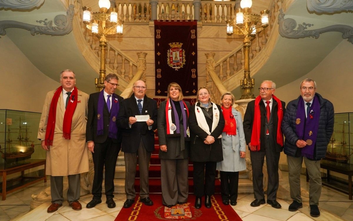 La Llamada también sirvió para que Arroyo entregase a la Junta de Cofradías el cheque con el que el Ayuntamiento de Cartagena contribuye a la celebración de los desfiles pasionales. La cuantía aportada por el Consistorio asciende a 250.000 euros, lo que supone 25.000 euros más que el pasado año.