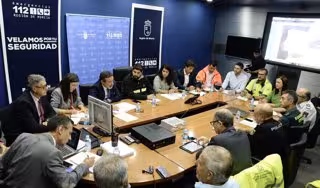 El jefe del Ejecutivo regional, Fernando López Miras, preside la reunión de trabajo para abordar las actuaciones en diferentes ámbitos ante el aviso especial nivel rojo por fuertes lluvias que está afectando a la Región de Murcia. - CARM