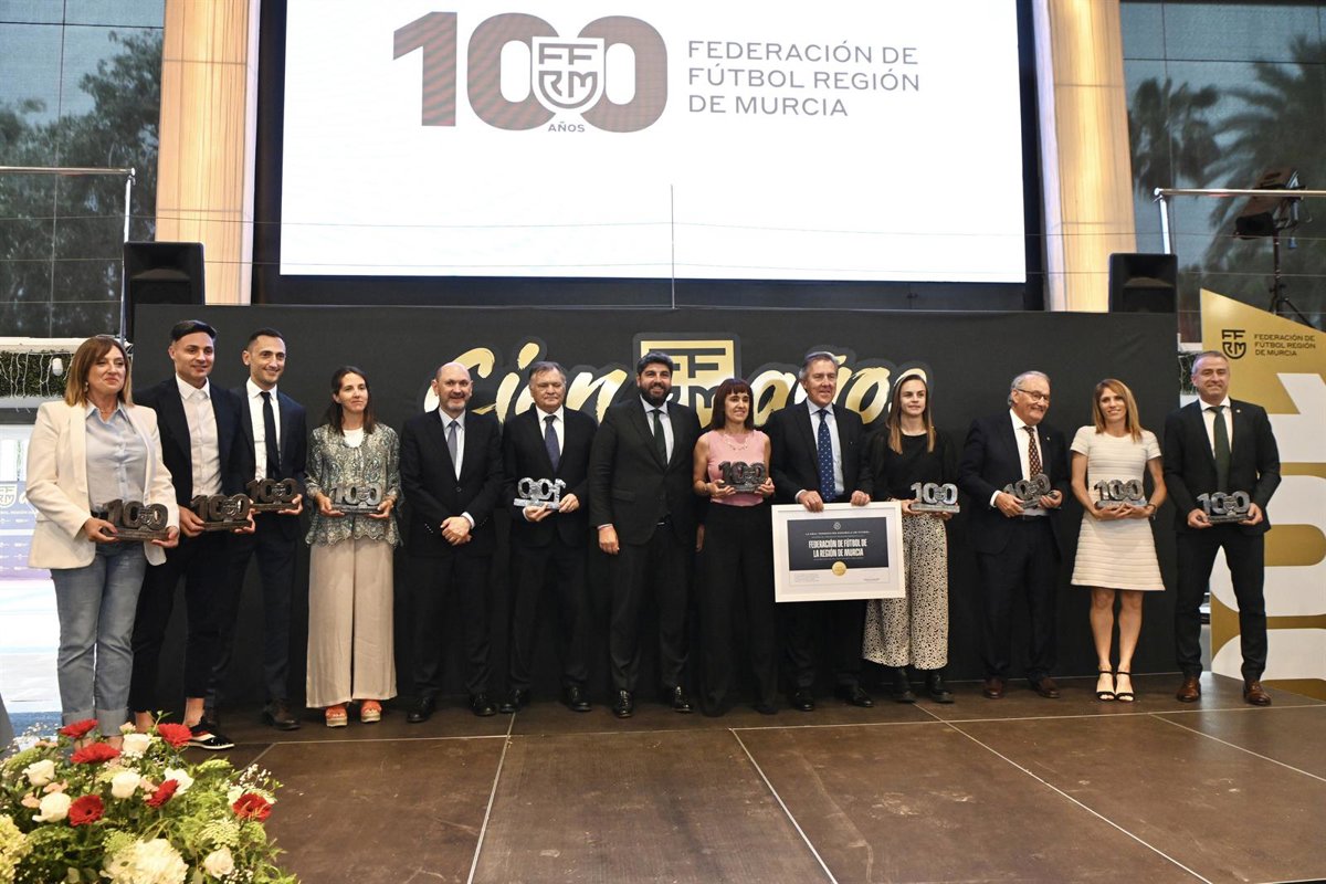 López Miras ha trasladado su felicitación por la efeméride al presidente de la entidad rectora del fútbol en la Región, José Miguel Monje Carrillo, y ha recordado que el Gobierno autonómico concedió el pasado año la Medalla de Oro de la Región de Murcia a la Federación por estos cien años de historia.