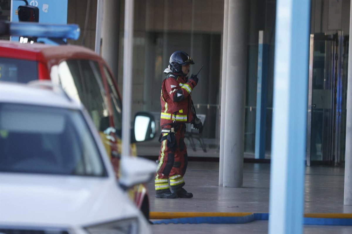 Un bombero trabaja para extinguir el incendio en el hospital Santa Lucía de Cartagena, a 26 de noviembre de 2025, en Cartagena, Región de Murcia (España). El hospital Santa Lucía de Cartagena ha sido evacuado debido a un incendio que se ha declarado esta - Martín C. - Europa Press