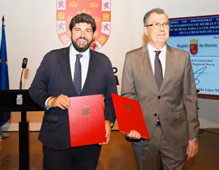 El presidente del Gobierno de la Región de Murcia, Fernando López Miras, ha suscrito este viernes con el alcalde de Murcia, José Ballesta, el protocolo de colaboración entre ambas administraciones para la organización de los actos de celebración en 2025 de los doce siglos de historia de la ciudad. Así, según destacó López Miras, la Comunidad "estará junto a Murcia para difundir y llevar a todo el mundo este importante aniversario".