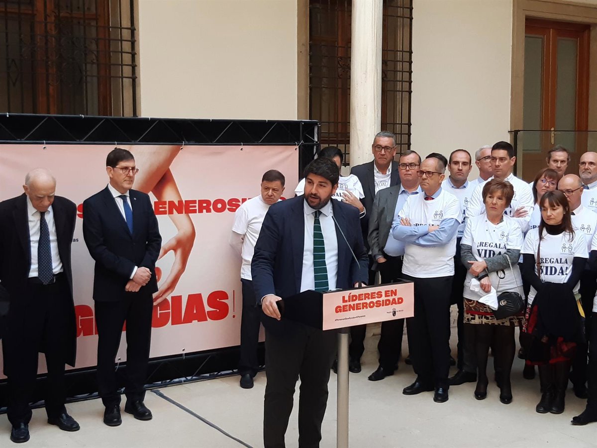 López Miras ha hecho estas declaraciones tras participar en la recepción a los profesionales implicados en el proceso de donación y trasplante de órganos de la Región de Murcia, un acto que ha comenzado