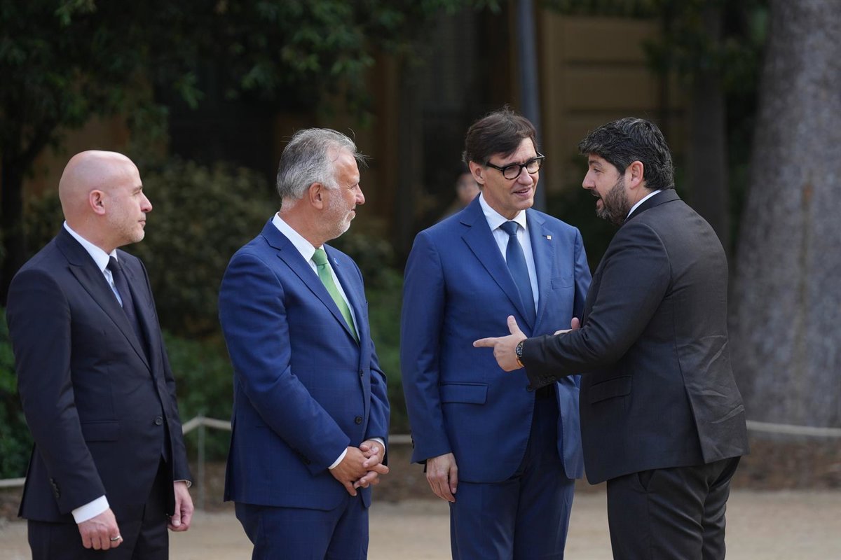 (I-D) El delegado del Gobierno en Cataluña, Carlos Prieto; el ministro de Política Territorial, Ángel Víctor Torres; el presidente de la Generalitat de Cataluña, Salvador Illa y el presidente de la Región de Murcia, Fernando López Miras, a su llegada a la - David Zorrakino - Europa Press