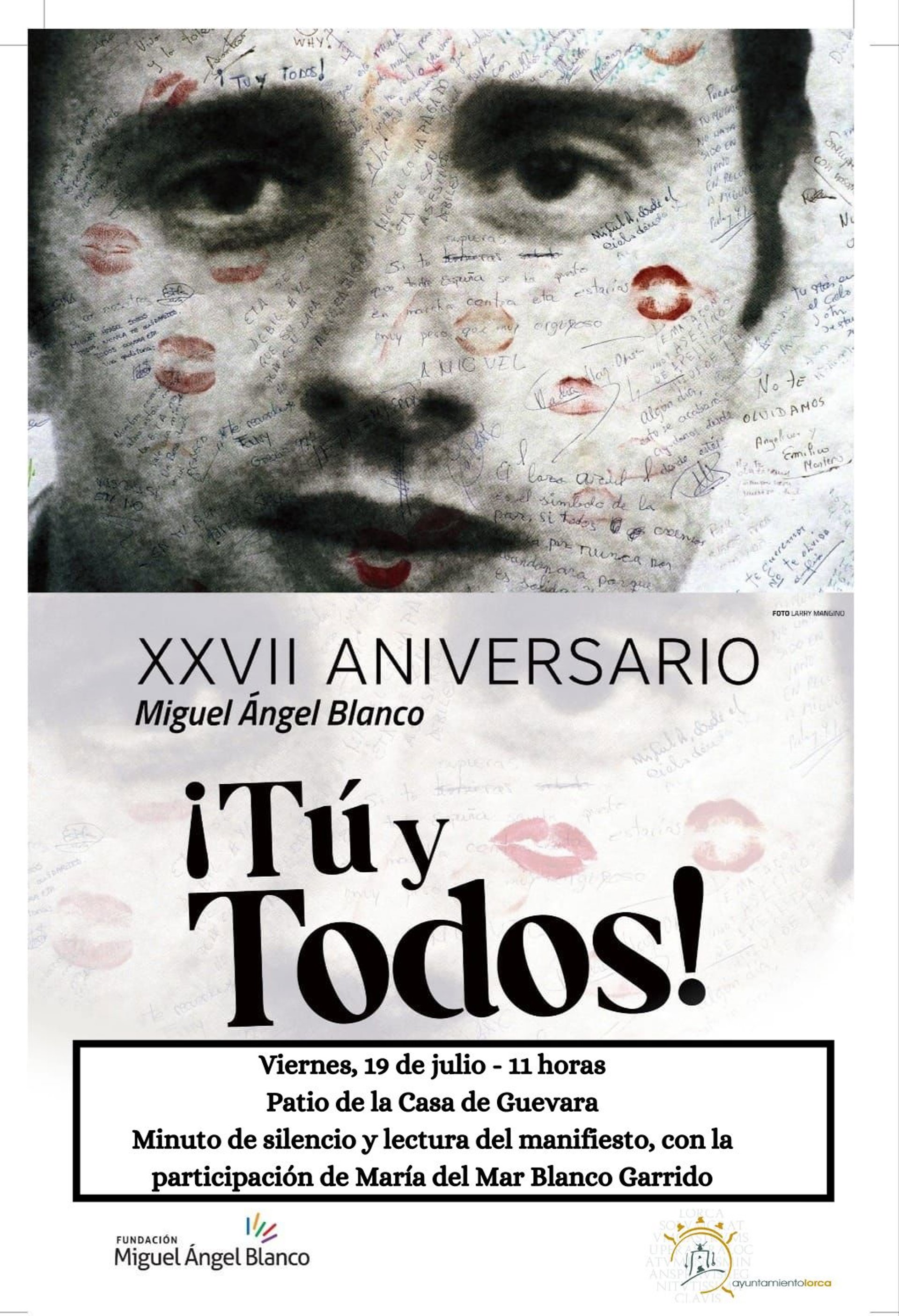 Lorca rendirá homenaje a Miguel Ángel Blanco, concejal de la localidad vizcaína de Ermua, secuestrado y asesinado por el grupo terrorista ETA en 1997 a los 29 años, en un acto que tendrá lugar el próximo viernes, 19 de julio, según informaron fuentes municipales en un comunicado.
