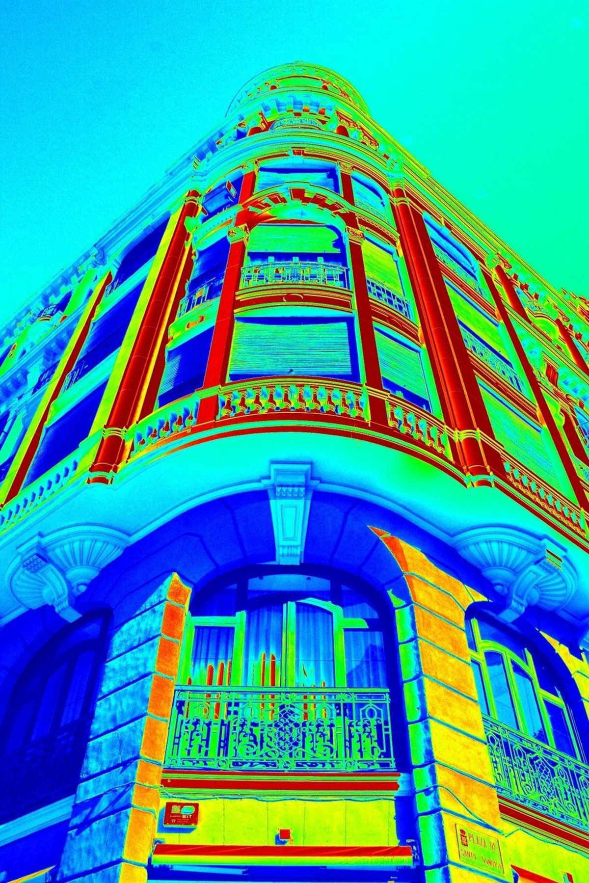 La muestra está formada por una cuidadosa selección de once imágenes de Murcia ciudad que proponen reorientar el sentido natural de la visión para introducir la dimensión vertical y afilada sobre fachadas y esquinas.