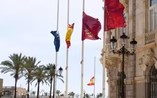 De acuerdo con el decreto de Presidencia del Gobierno, publicado este lunes en el Boletín Oficial del Estado (BOE), han amanecido los edificios municipales del Ayuntamiento de Cartagena con las banderas a media asta en señal de luto por el fallecimiento del expresidente Adolfo Suárez.