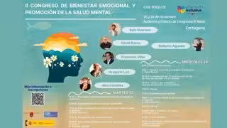 Más de 1.400 profesionales de la educación y ponentes de reconocido prestigio se darán cita en la II edición del Congreso de bienestar emocional y promoción de la salud mental, que se celebrará los días 25 y 26 de noviembre en el Auditorio El Batel de Cartagena.