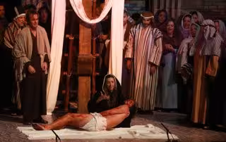 Para la realización de este drama sacro han participado cerca de 200 personas que han cuidado hasta el más mínimo detalle, desde la iluminación hasta la música en directo, pasando por las interpretaciones y la composición.