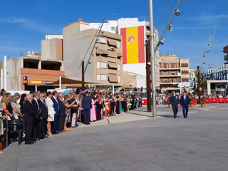 El alcalde de Alcantarilla, Joaquín Buendía, y el coronel jefe de la Base Aérea, Alberto José Lens, han presidido un acto que "muestra el sentimiento de cariño por la bandera de España, una celebración en la que participa toda la ciudad, con las ventanas y balcones, calles y plazas, engalanados con los colores que nos representan a todos como españoles, los colores de nuestra Bandera", ha explicado el alcalde.