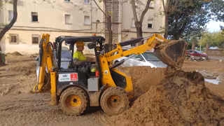 Un efectivo del dispositivo desplegado por el Ayuntamiento de Murcia maneja una retroexcavadora en una de las calles afectadas por la DANA - AYUNTAMIENTO DE MURCIA