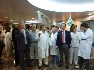 Más del 90 por ciento de los profesionales sanitarios se concentraron hoy ante las puertas de hospitales y centros de salud de todo el SNS para protestar contra las medidas aprobadas por el Gobierno, secundando la convocatoria conjunta de las organizaciones profesionales Confederación Estatal de Sindicatos Médicos (CESM), Sindicato de Enfermería (SATSE) y Unión Sindical de Auxiliares de Enfermería (USAE).