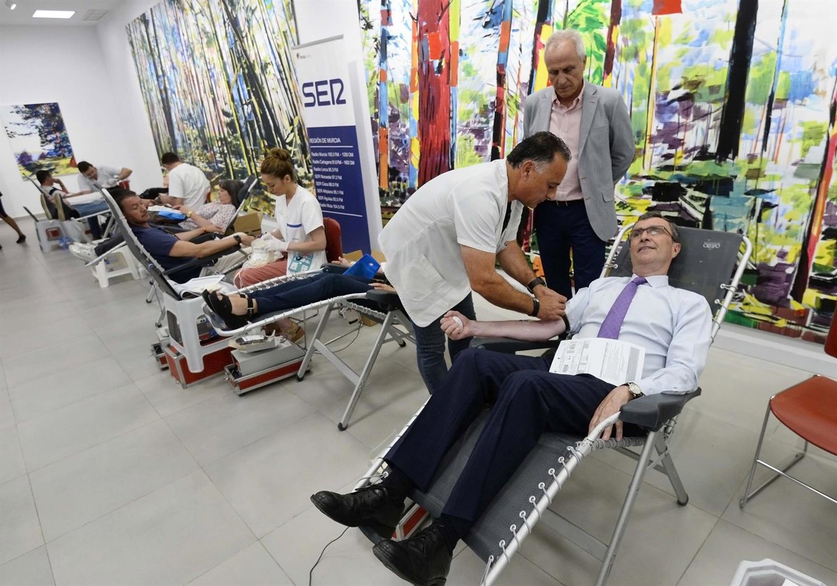Momentos antes de donar sangre, el alcalde de Murcia en funciones, José Ballesta, ha destacado que "la sangre no se puede fabricar, no se puede producir. Sólo existe una fuente, que es el ser humano. Una persona que dona su sangre a otra persona -cuya identidad desconoce-, en un acto de entrega y generosidad".