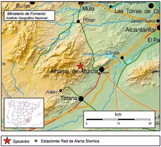 Concretamente, el epicentro fue localizado a dos kilómetros de profundidad en un punto situado en los 37.9675 grados de latitud y -0.5451 grados de longitud, según fuentes del Instituto Geográfico Nacional consultadas por Europa Press.
