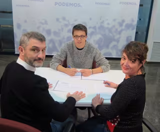 Errejón, sentado a la mesa con Óscar Urralburu y María Giménez - EUROPA PRESS - Archivo