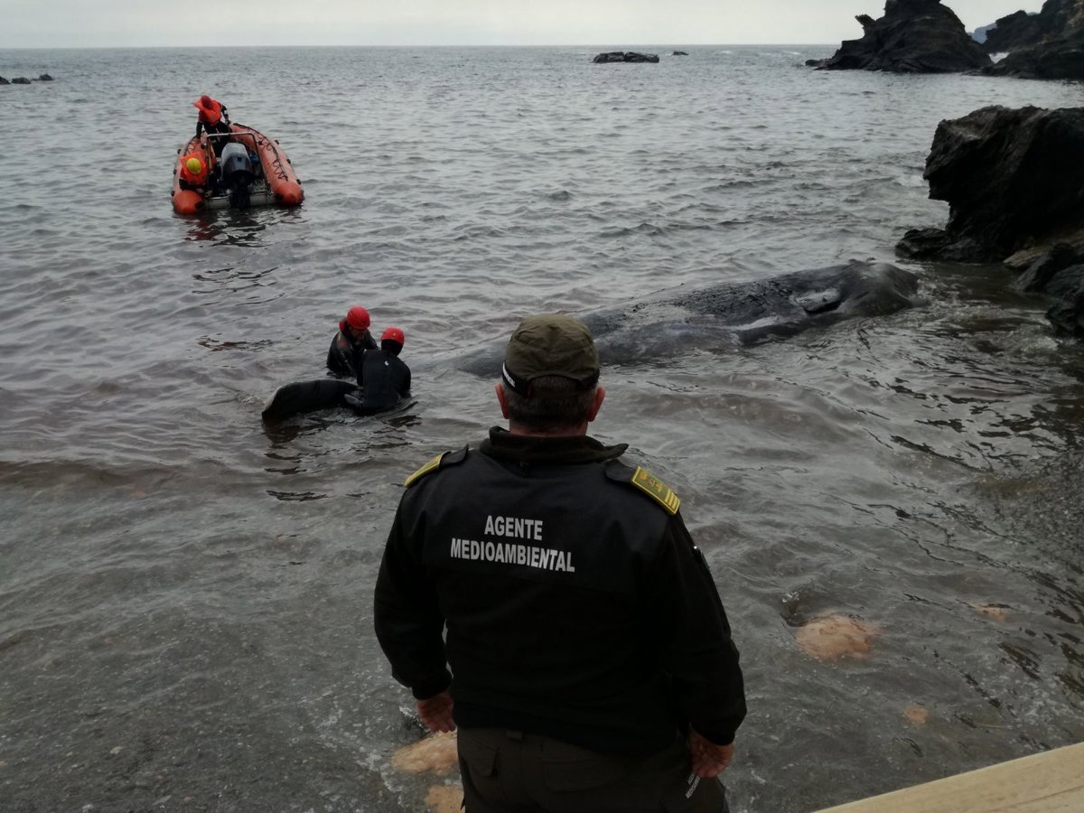 Ante el aviso, se activó el protocolo de varamientos de cetáceos y tortugas marinas en la Región, y tras ser retirado de la playa se realizó la necropsia del animal. Era un ejemplar macho, juvenil, de casi diez metros de longitud y 6,5 kg de peso y, durante el examen interno, se detectó en su aparato digestivo (estómago e intestino) 29 kg de basura marina como bolsas de basura, sacos de rafia, cabos, trozos de redes, un bidón, etc. Material que los expertos creen que pudo causarle la muerte por una peritonitis o por una impactación del aparato digestivo ante la imposibilidad de expulsarlo.