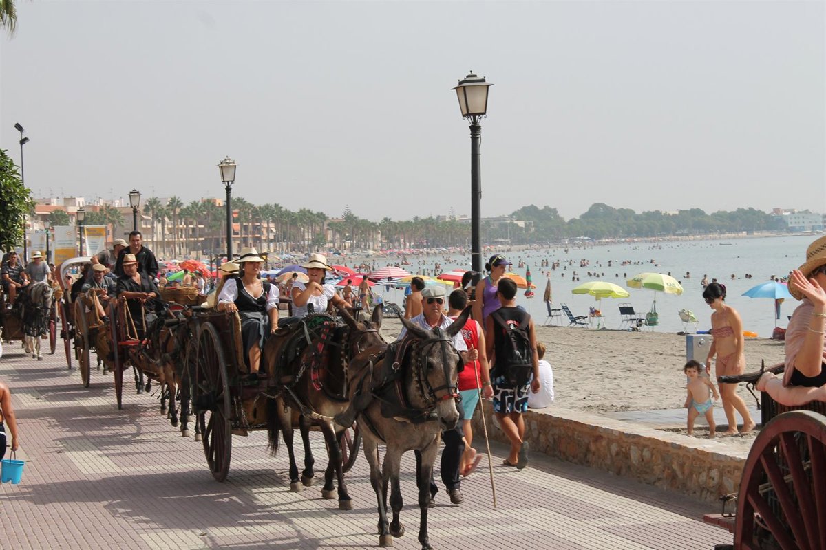 A pesar de que esta Ruta viene realizándose varios años, el pasado año, se cambió el itinerario inicial para rememorar el trayecto original de antaño, en el cual, los carros discurrían por el paseo marítimo. Miles de bañistas han observado desde su toalla o desde el agua, el transcurso de una ruta que rememora décadas atrás, cuando hombres y mujeres de la huerta murciana querían darse un remojón y llegaban al municipio con sus carros, instalándose aquí. Ellos fueron los primeros turistas de la playa de los murcianos.