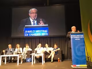 El presidente de la UCAM, José Luis Mendoza, ha intervenido esta mañana en un panel de expertos en el que se ha reflexionado sobre la temática 'Las alegrías y desafíos de ser padres hoy', enmarcado en el congreso celebrado con motivo del Encuentro Mundial de las Familias que se celebra esta semana en Dublín (Irlanda).